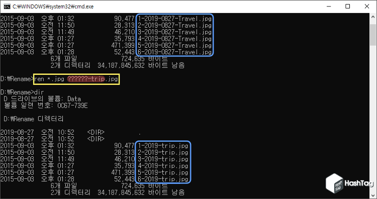 명령 프롬프트(CMD)를 이용한 여러 파일의 이름을 변경하는 방법 본문