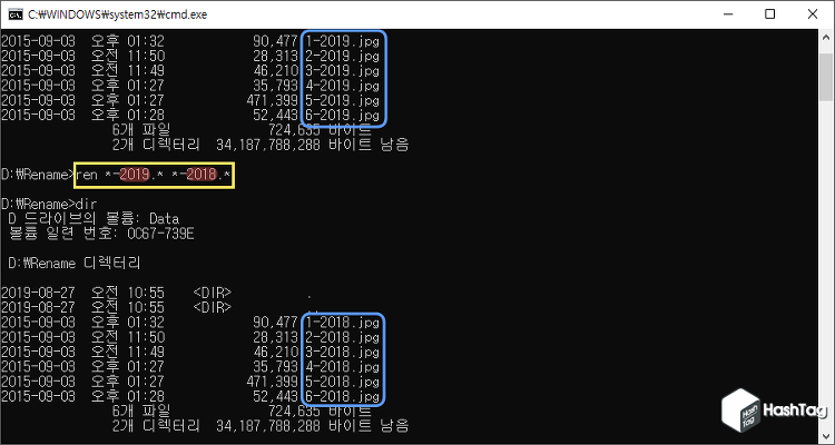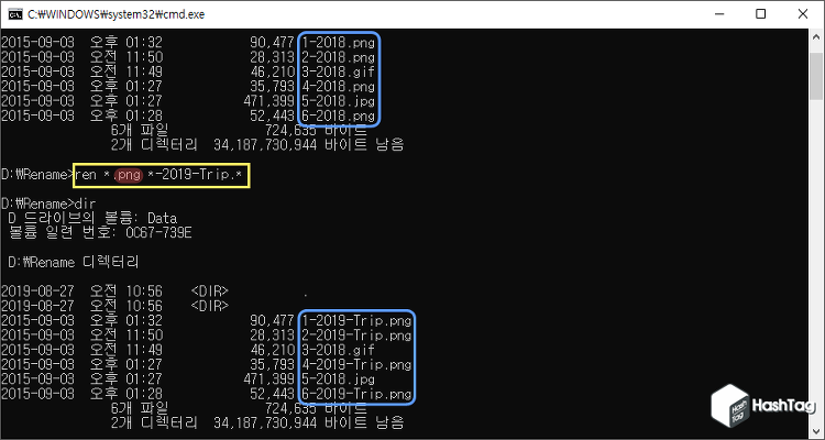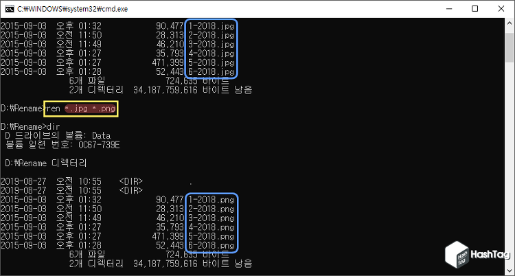 ② 윈도우 명령 프롬프트(CMD)를 이용한 여러 파일의 이름을 변경하는 방법